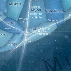 Quote: | Attempts have been made in the past to bridge the expanse between the overlapping lengths of the Harrin Corridor and the Enarc Run, but all failed to find a safe and reliable passage linking the two. The paucity of star systems between the two routes coupled with the high degree of deep soace hazards led to the failure of previous expeditions. That is, until an enterprising team of free-traders uncovered the references to Kira Prime. The discovery of a system––even if it were a dead system––in the are between the two routes was the breakthrough that was needed. Realizing that they could use a system with an established location as a stopover point and nivigational reference, the Haik expedition set out from Ropagi to plot a new hyperspace route. The attempt succeeded. Taking a bearing from Kira, the adventurers were able to plot a safe course to Ropagi in the Enarc Run. As more passages were made, the way became easier. As the hyperspace path was further explored and refined, reliable travel became possible. … Soon, what began as a minor shuttling operation turned into an indispensable link in galactic trade––the Kira Run. |